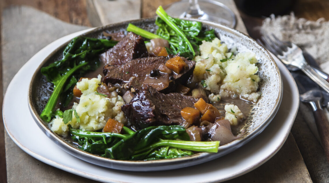 Un taglio di carne speciale, profumato con ginepro e noce moscata e cotto a lungo. Un boccone tenerissimo, da servire con verdure