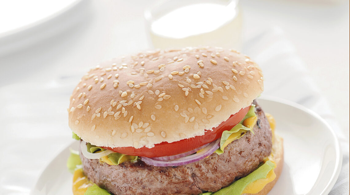 2) Una volta fatti tostare i pani, spolverizza sulla piastra un pizzico di sale e comincia a cuocere gli hamburger di manzo per circa 3 minuti per lato. Condisci gli hamburger di manzo con la salsa Worcester o, in alternativa, con il tabasco, salali leggermente e disponili all'interno dei panini ancora caldi aggiungendo anche un cucchiaio senape.
