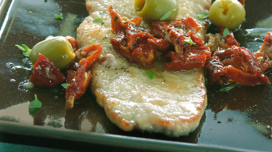2) Sfuma con un bicchiere di vino bianco e aggiungi una dadolata di pomodori secchi e olive verdi (4-5 cucchiai in tutto).