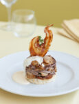 3) Con l’ausilio di un mixer da cucina, trita il pancarré, 3 o 4 foglie di salvia e l’aglio. Ora prendi i tournedos di manzo, ricoprili con uno strato di puré, un po’ di trito di pancarré, salvia e aglio e 2 o 3 fiocchetti di burro.