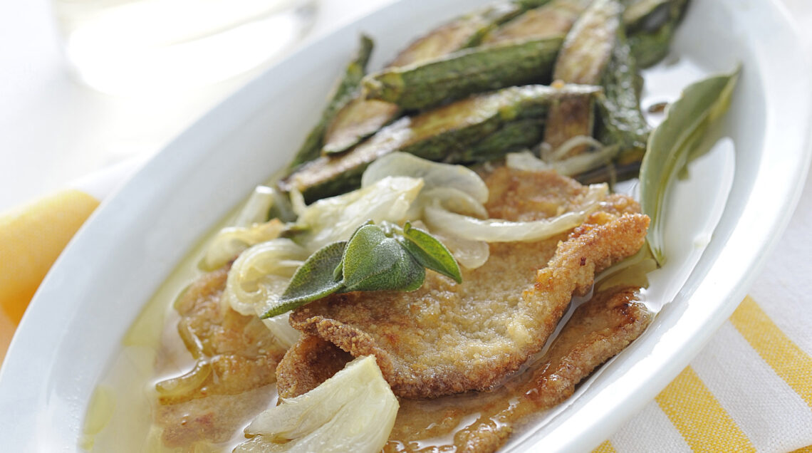 Le fettine di vitello rubano la ricetta a pesce e verdure. Impanate e fritte acquistano un intenso bouquet aromatico. Perfette per le cene d'estate