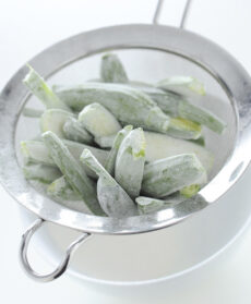 Lavate le zucchine e tagliatele in quarti nel senso della lunghezza: al contrario della carne, non devono essere troppo sottili altrimenti si inzupperanno troppo nel carpione. Infarinatele e friggetele.