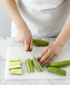 Intanto, lavate le zucchine, spuntatele e riducetele a bastoncini sottili: aggiungetele ai fagiolini 1 minuto prima del termine di cottura. Lavate i limoni, asciugateli, grattugiate la scorza di 1/2 agrume e ricavate 12 fettine da quello intatto. Allineate le fettine di carne e conditele con la scorza, un po' di peperoncino e sale. Disponete sulla carne fagiolini e zucchine e conditeli con sale e un po' di prezzemolo tritato. Arrotolate le fettine, coprite ogni involtino con una fetta di limone e fissateli con un giro di spago.