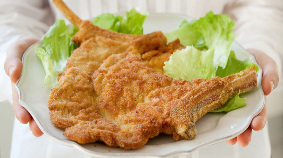 Orecchia d'elefante, un secondo di carne gustosissima. La costoletta, passata nelle uova, ricoperta di pangrattato, è fritta nel burro