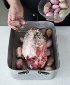 Irrorate carne e scalogni con un filo di olio, passate la teglia in forno caldo a 180° e cuocete per circa 3 ore.