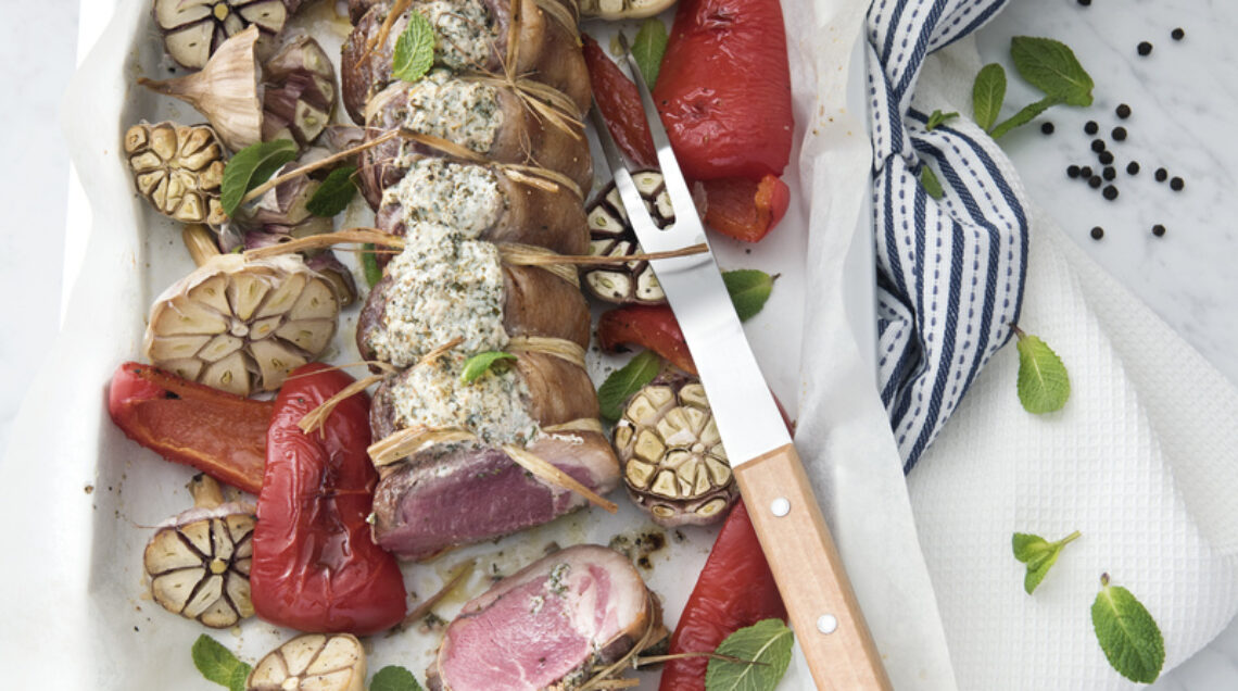 Sella d’agnello cotta a bassa temperatura, insalatina di cipollotto fresco e coriandolo e patata mantecata allo zafferano