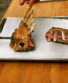 Per un gusto più delicato, usate burro chiarificato, tipo ghee, (sciolto a bagnomaria e filtrato), che non brucia durante la rosolatura. Se avete un termometro a sonda, utilizzatelo per controllare la cottura del carré, che è perfetto quando la temperatura interna è di 52°.