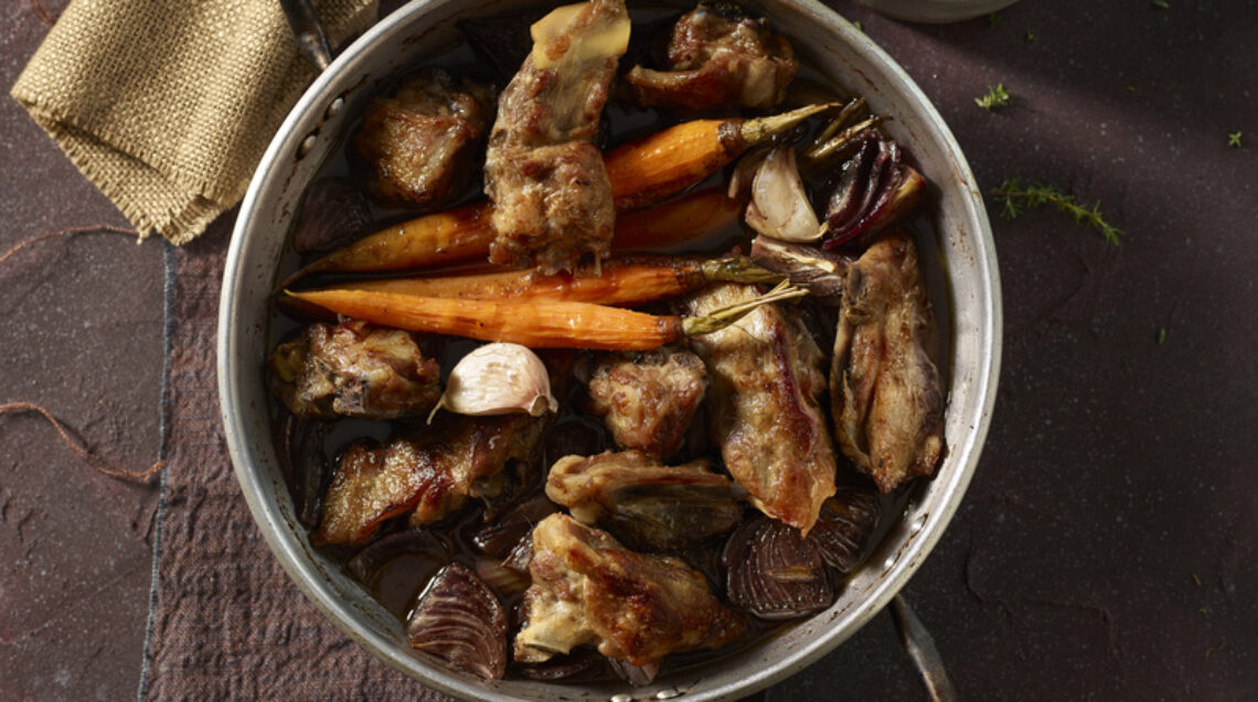 La cottura confit permette alla carne di cuocere in forno a lungo e a bassa temperatura, assorbendo i sapori e i profumi delle erbe aromatiche, della cipolla e del brodo. L'agnello si ingentilisce nel sapore verace, acquistando morbidezza.