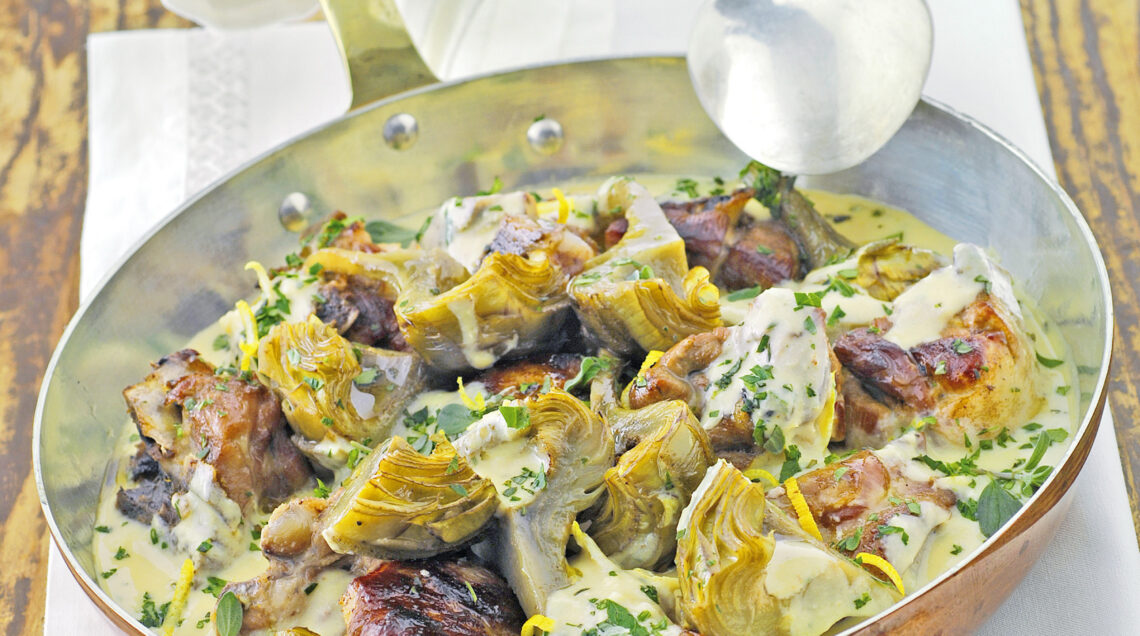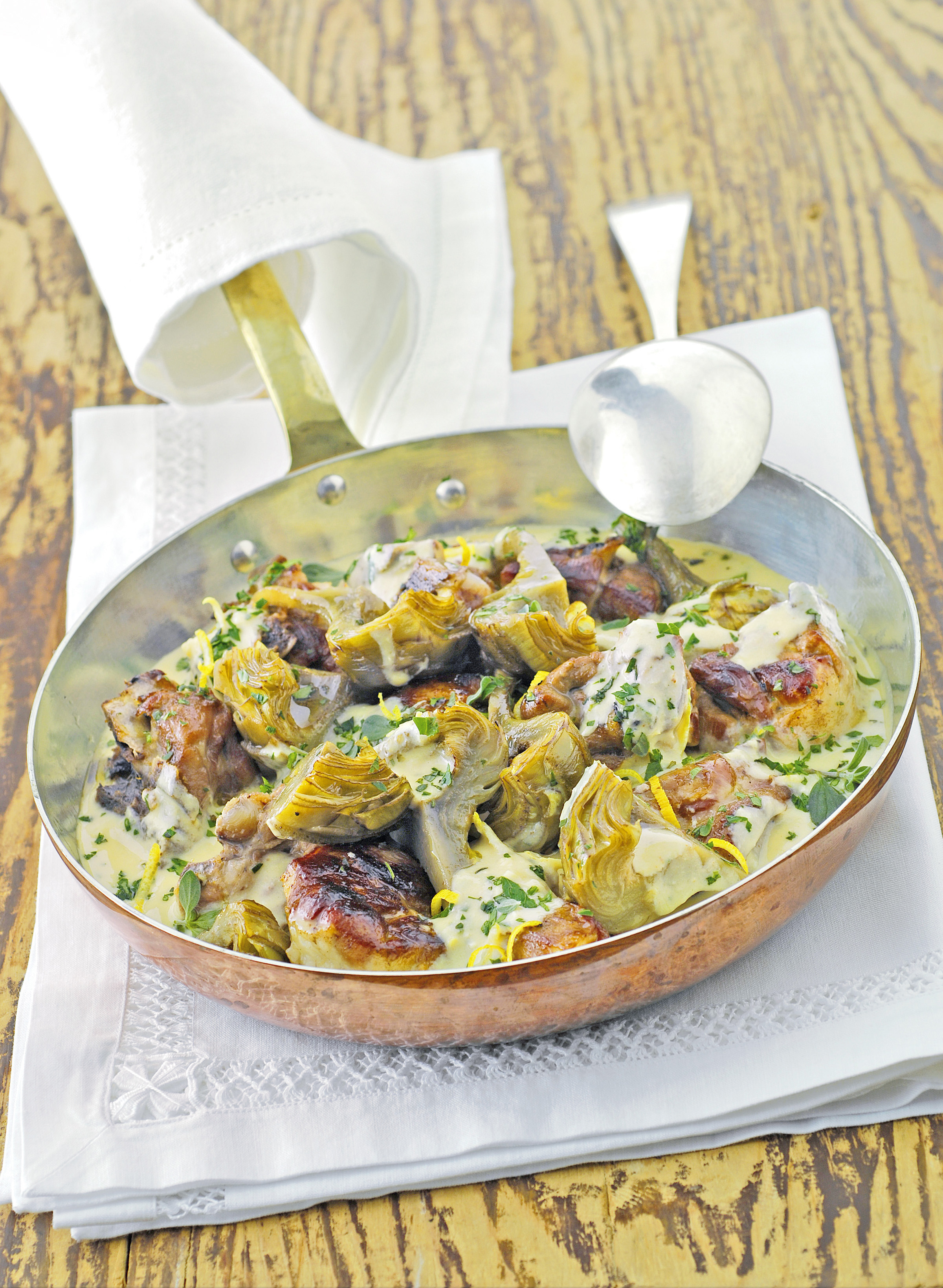 3) Unisci i carciofi sgocciolati e cuoci i bocconcini in fricassea per 30 minuti.