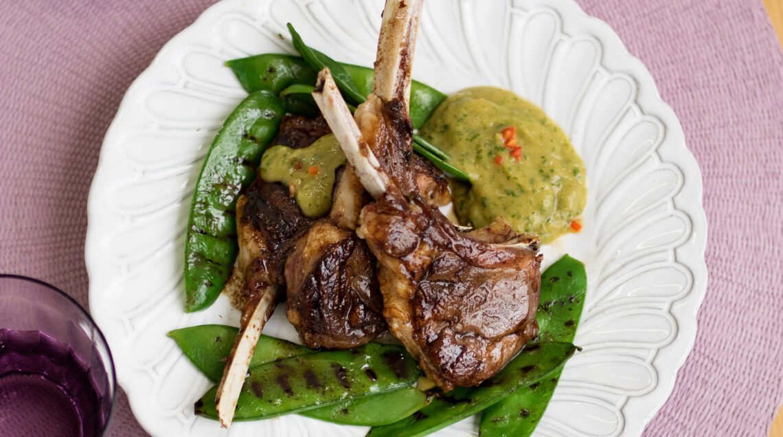 Un secondo piatto appetitoso, preparato con carne ovina, valorizzata da zenzero, taccole e salsa piccante di cipollotti