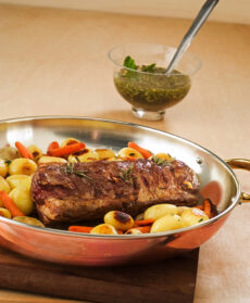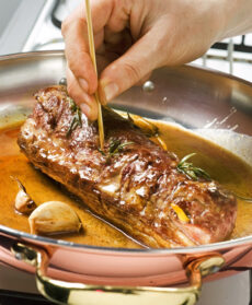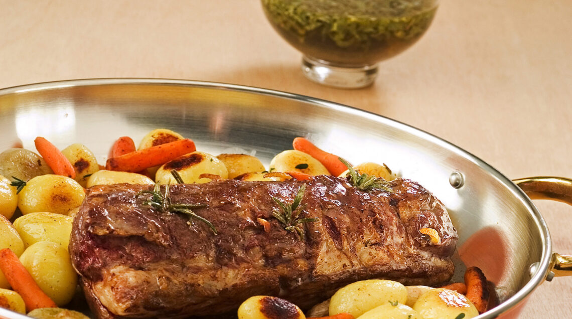 Poco diffuso nella cucina italiana, l’abbinamento tra carne d’agnello e menta è un classico della cucina greca. In questa ricetta, la menta, un’erba primaverile molto profumata e dal sapore pungente, viene fatta macerare insieme all’aceto, acquisendo un particolare sentore agrodolce perfetto per esaltare il sapore della lombata arrosto. La lombata arrosto può essere servita con contorno di verdure miste o con delle patate al forno.