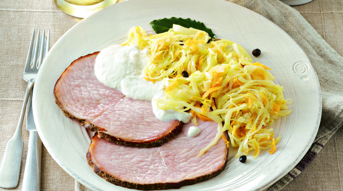 Il sentore affumicato dell'arista e quello acidulo dei crauti sono esaltati dal piccantino del rafano. Da servire con panna acida