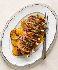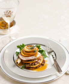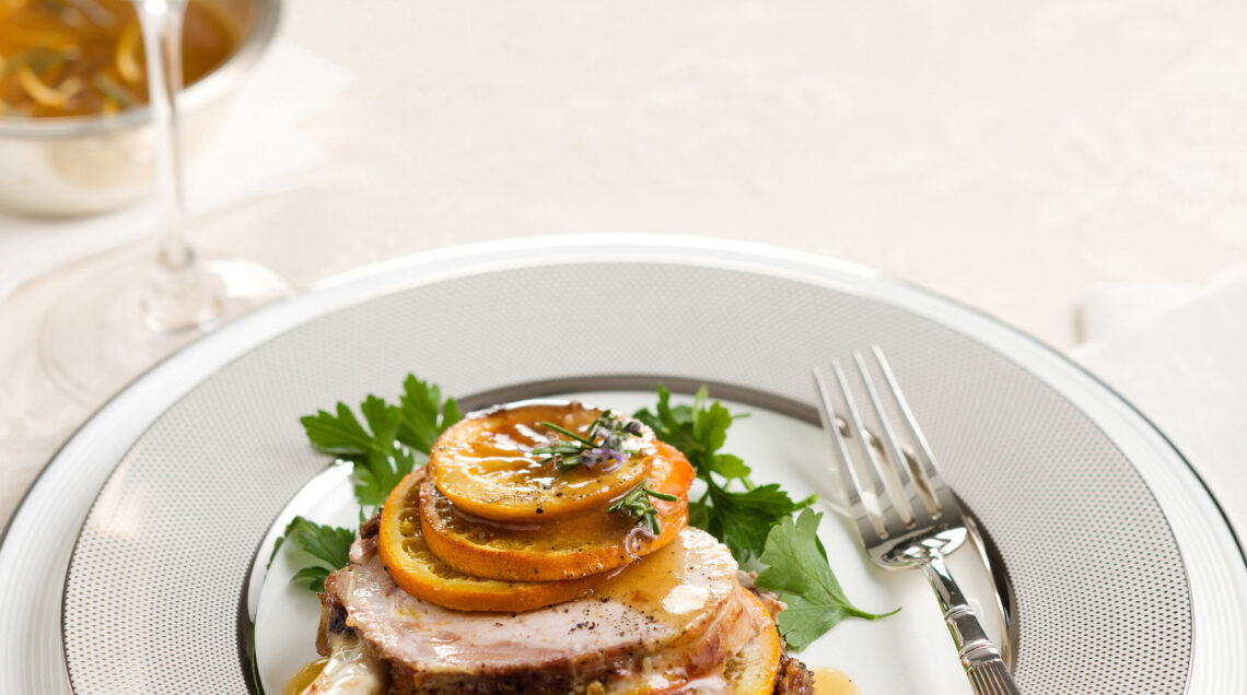 Trasferite il carré in una pirofila, salate, pepate, bagnatelo con il vino caldo e cuocetelo in forno a 180° per un'ora e mezzo, coprendolo con un foglio d'alluminio verso metà cottura e bagnandolo di tanto in tanto con un po' di succo d'arancia e con il suo fondo di cottura. Servitelo a fette.