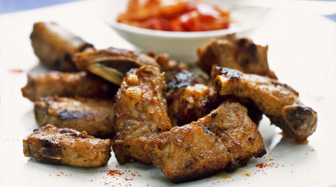 Per la cottura, però, non ci sono scappatoie: deve essere fatta all'ultimo, perché le costine riscaldate rischiano di diventare asciutte e stoppose. Accompagnatele con ciotoline di miele, senape e harissa.
