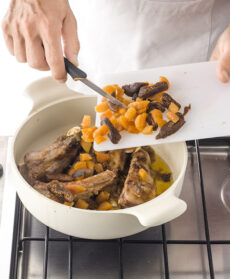 Verso la fine, aggiungete i fichi e le albicocche tagliate a pezzetti.