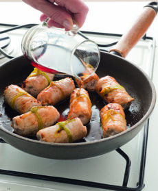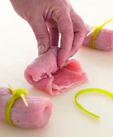Le fettine devono essere sottili e non troppo strette, per accogliere il ripieno ed essere facilmente arrotolate. Potete tenere chiusi gli involtini con uno stecchino oppure legarli con spago da cucina.