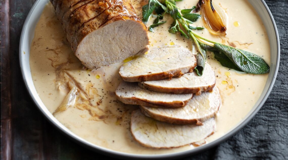 Un secondo raffinato, la lonza al vino con salsa al mascarpone è un arrosto perfetto per la tavola d'autunno. Profumate con scorza di limone