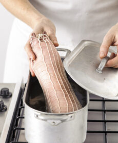 Il pregiato salume è avvolto in foglie di verza, rosolato in padella con aglio, rosmarino e salvia e servito a fette. Ideale per il pranzo di Capodanno