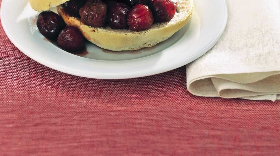 4) Versa il succo del limone e il vino, aggiusta di sale e cuoci a fiamma bassa per 12 minuti. Gusta le polpettine e ciliegie con il pane arabo.