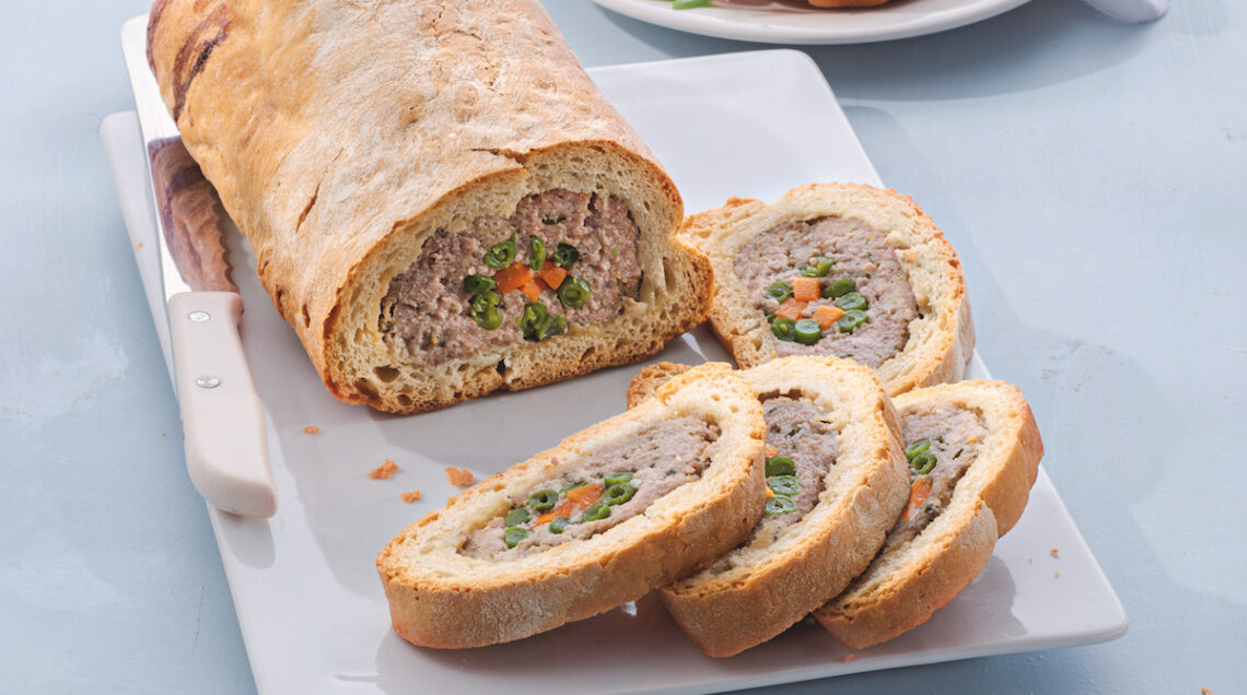 Un'idea originale, perfetta anche per usare gli avanzi: il pane del giorno prima, carni cotte al forno o in pentola e sminuzzate finemente, verdure lessate. Potete variare il pane, usando una baguette per esempio o una pagnotta tipo il pane d'Altamura, e il ripieno, usando anche pollame, dal sapore più gentile, o selvaggina, decisamente più saporita.