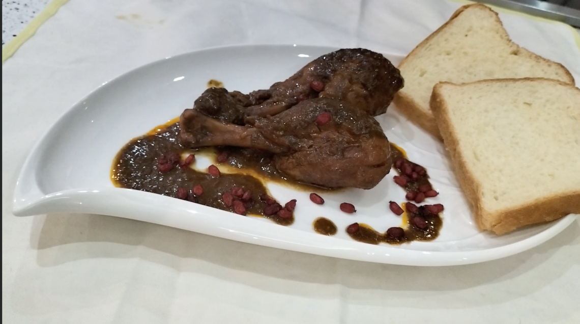 Il fesenjan è una preparazione culinaria tra le più caratteristiche della cucina persiana, assimilabile a uno stufato di carne. Il pollo è cotto in melassa di melograno e zafferano