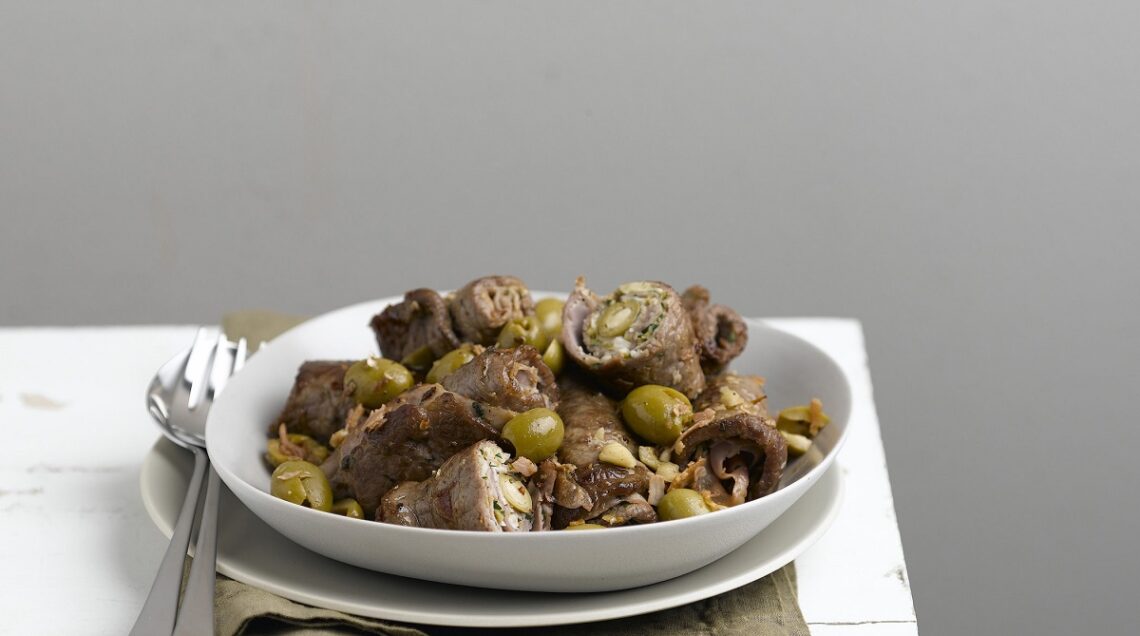 Involtini di olive verdi e vitello, mandorle e prosciutto, la preparazione