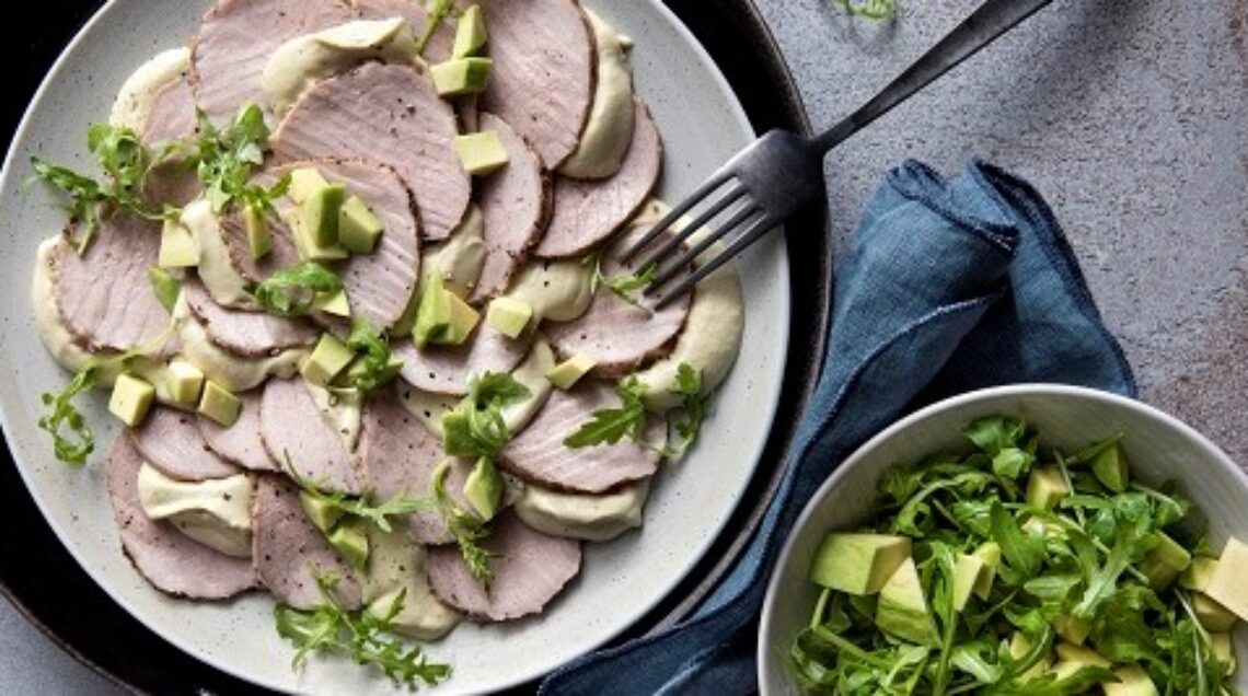La ricetta del vitello tonnato è un grande classico della cucina italiana, riportato anche nell'ottocentesco ricettario di Pellegrino Artusi La scienza in cucina e l'arte di mangiar bene. Come altri "mostri sacri" della tradizione gastronomica... innovare si può! Da un lato occorre rispettare, come nella nostra ricetta, ingredienti e sapori originali: il taglio di carne, le alici, naturalmente il tonno. Dall'altro si può usare una tecnica inaspettata come la cottura al sale e intensificare il gusto con le erbe aromatiche usate per la crosta. Ma anche osando un tocco speciale, quello dell'avocado, cremoso e pastoso, che rende il piatto ricco e attuale.