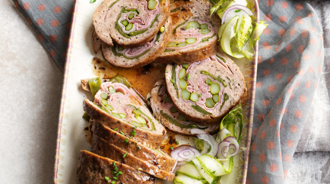 In questo caso vi proponiamo un polpettone ripieno di prosciutto cotto, asparagi e taccole, una gustosa alternativa perfetta per la stagione primaverile.