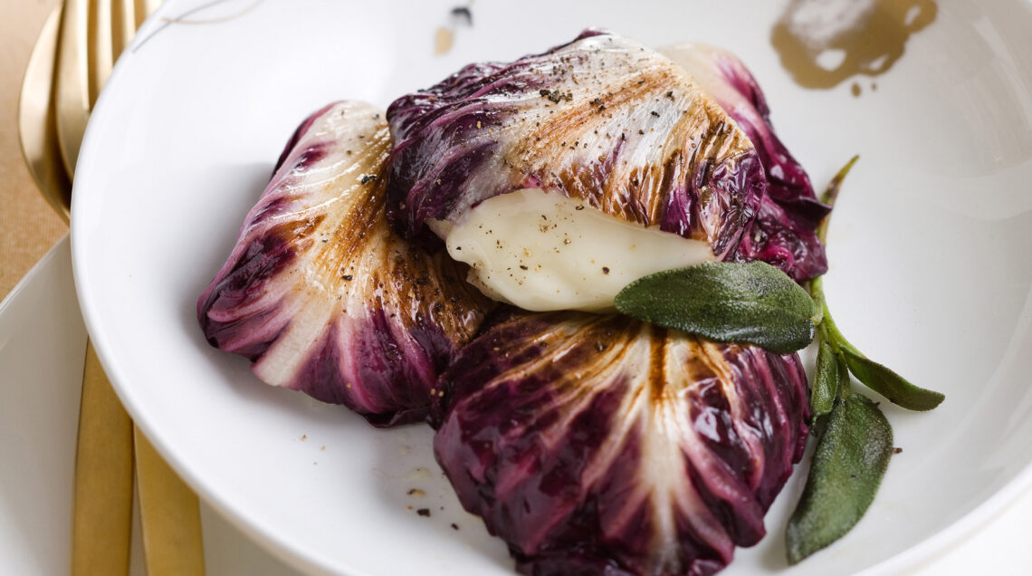 Questo sfizioso fagottino di radicchio ripieno di morbido formaggio filante e condito con burro e salvia, può essere servito come secondo o come insolito antipasto.