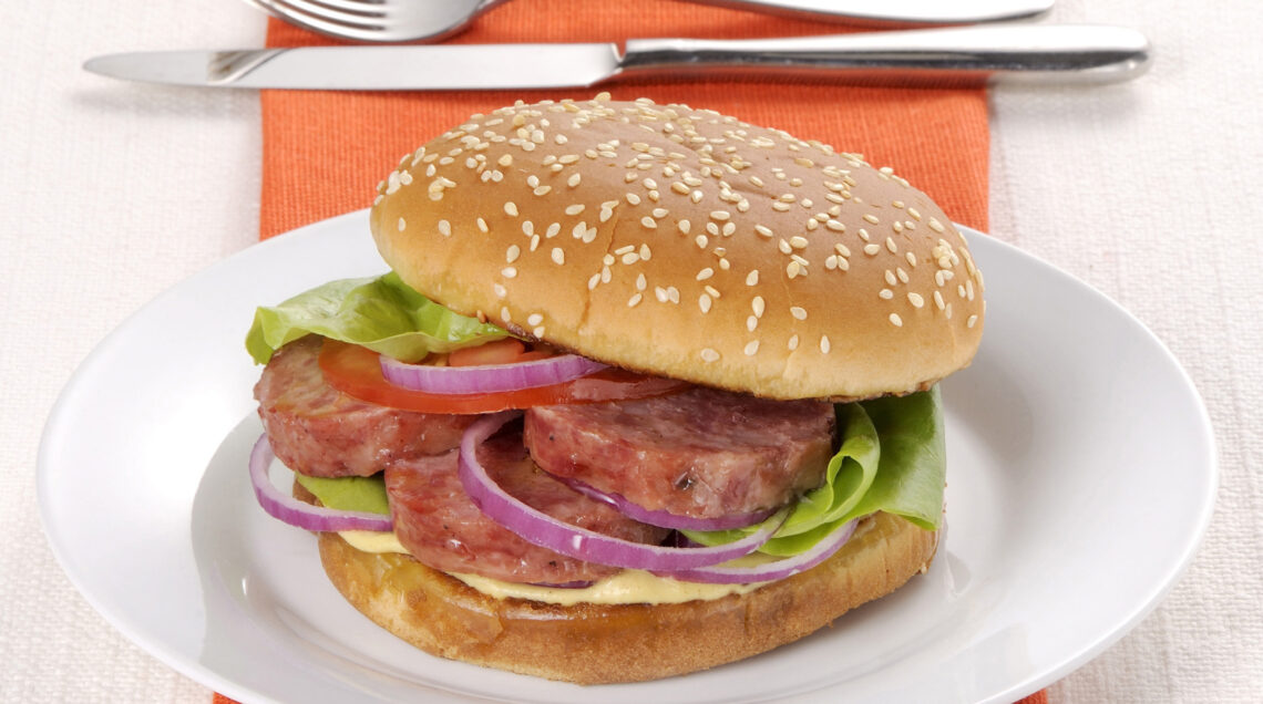 5) Spalma la senape su entrambe le metà dei panini e riempi il panino con la lattuga, 3 fettine di cotechino e qualche fettina di pomodoro. Chiudi e servi l'hamburger di cotechino.