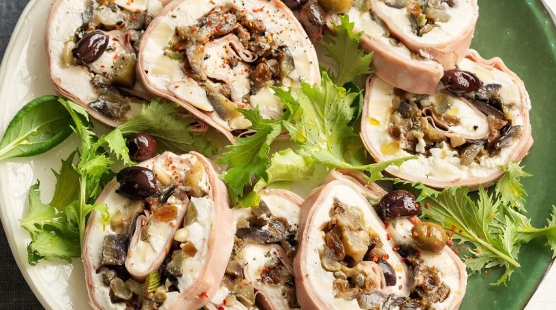 Rotolo salato di mortadella, con formaggi e caponata, la prepazione