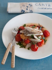 Arrosto di salmone e nasello all’arancia con cavolini alla melagrana