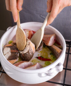 Un secondo tradizionale a base di pesce e sugo di pomodoro, insaporito con peperoncino ed erbe aromatiche