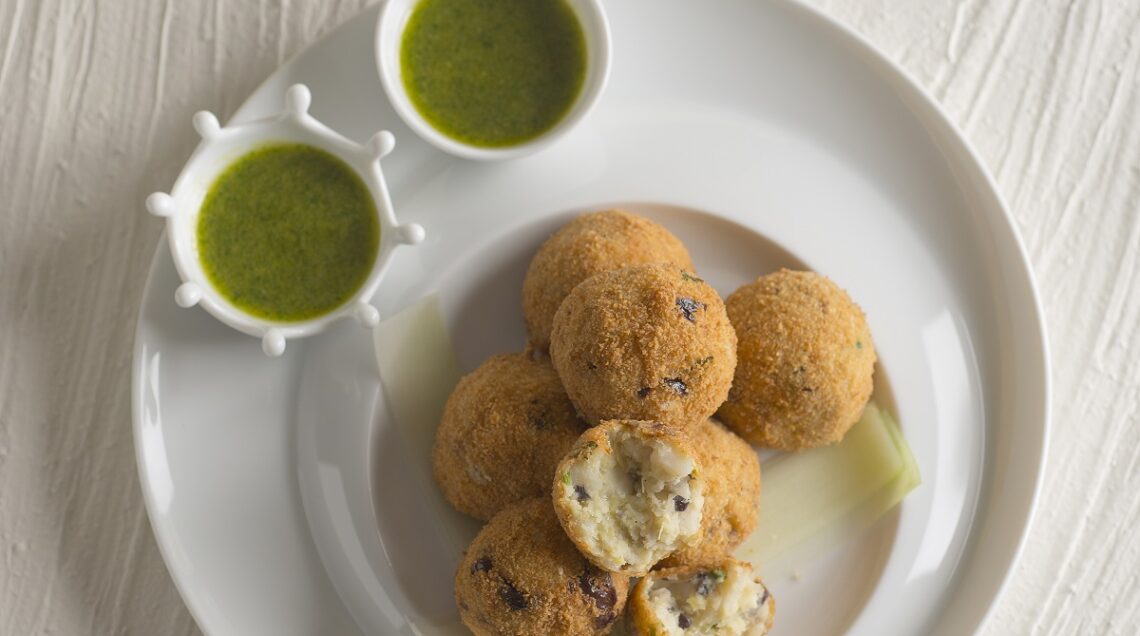 4 Formate tante palline grandi come un'albicocca, passatele nel pangrattato e friggetele poche alla volta in abbondante olio ben caldo, fino a doratura. Scolatele su carta per fritti e servitele calde o tiepide con il pesto di prezzemolo.