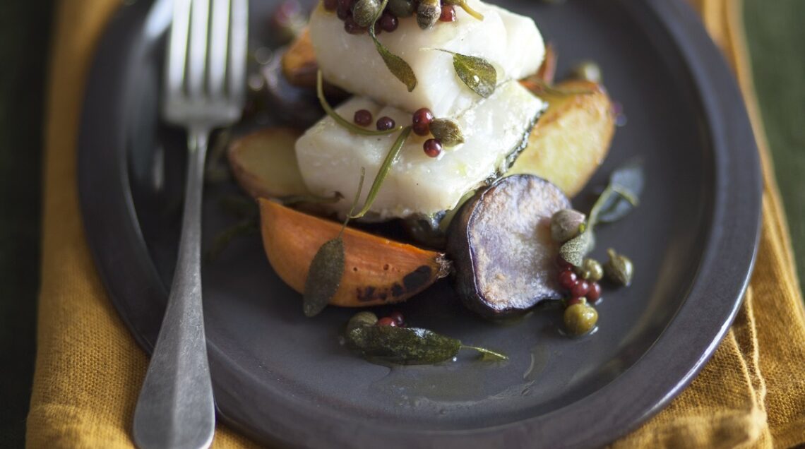 Merluzzo alle verdure con patate miste all'olio e rosmarino, la preparazione