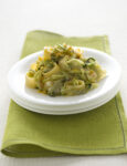 Il ripieno per i molluschi di questa ricetta è preparato con i ceci, precotti e in scatola. Esistono diverse varietà di ceci, disponibili essiccati, buoni e nutrienti. Quelli secchi richiedono di essere ammollati per alcune ore e poi cotti finché diventano teneri. L'acqua di cottura di questi legumi, chiamata aqua faba, è un ingrediente top nella cucina vegana.