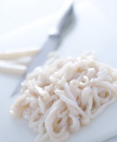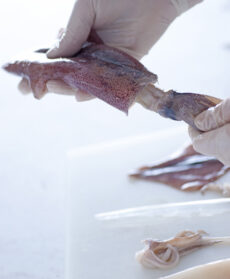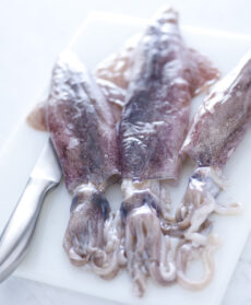 1) La ricetta dei calamari alla romana inizia con la pulizia dei pesci. Prendi i calamari, elimina la parte cartilaginea al loro interno, assieme agli occhi e al becco. Togli la pellicina esterna e puliscili sotto l’acqua fredda. Asciuga ogni calamaro con carta assorbente e poi affettali finemente.