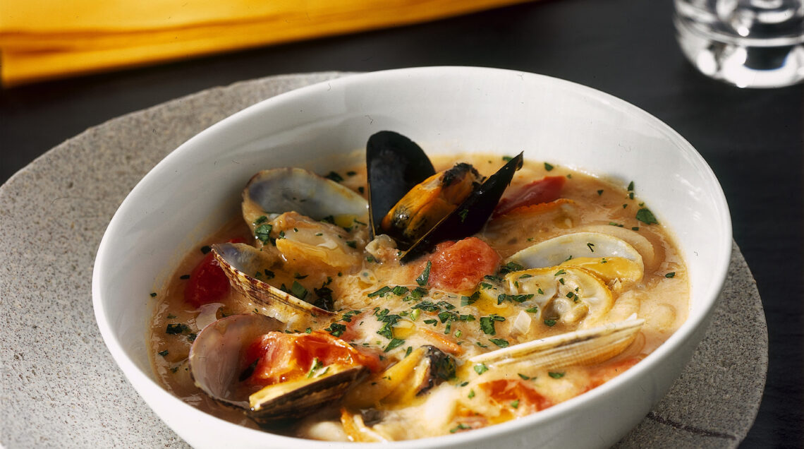 4) Suddividi la zuppa in 4 piatti fondi, decora con le conchiglie tenute da parte e servi subito.