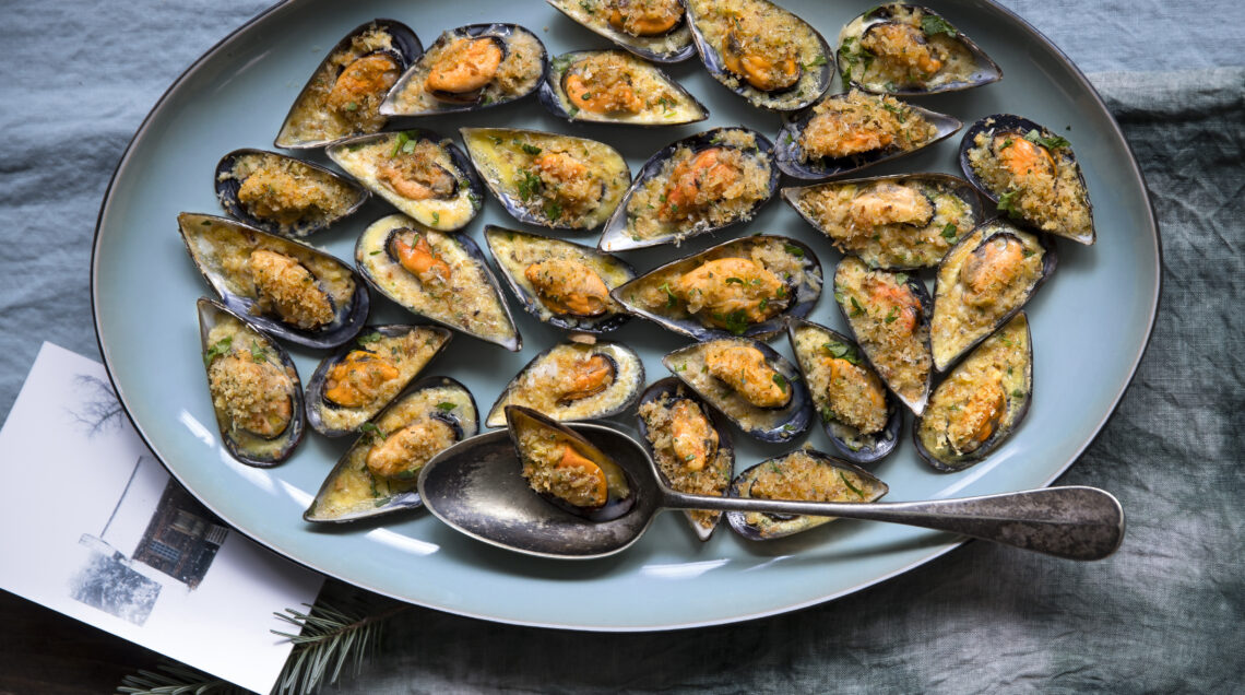Un ripieno di pane, formaggio e aglio, insaporito con prezzemolo e origano: tanto basta per avvolgere i molluschi di sapore. Un antipasto da servire caldissimo