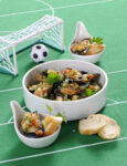 3) Distribuisci la crema preparata nei fasolari, cospargi con le mandorle in scaglie e un po' di timo. Gratina le conchiglie sotto il grill del forno per 2 minuti. Servi caldo.