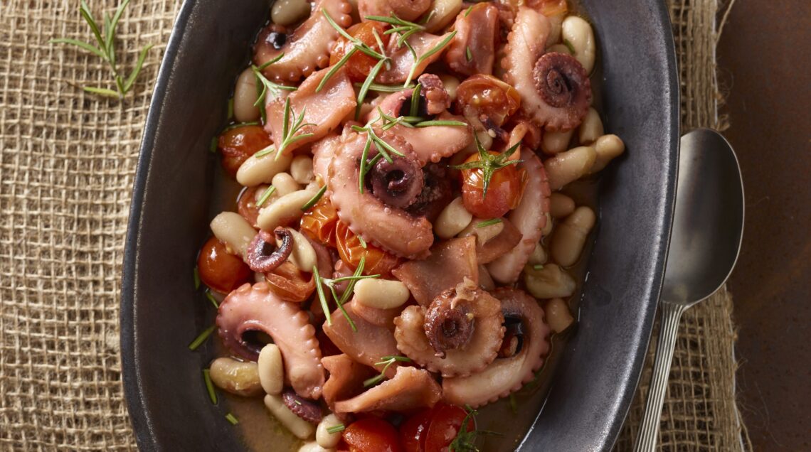 Questi riccioli di pesce al pomodoro, profumati con aglio e rosmarino, solleticano il palato. Una manciata di fagioli bianchi ed ecco un piatto leggero e saziante