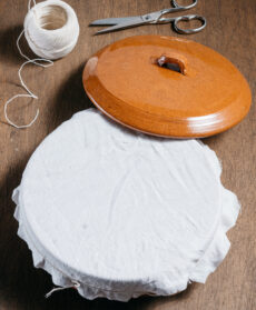 Stendete sul tegame un telo umido e fermatelo con un giro di spago. Mettete il coperchio e cuocete a fiamma bassa per 30 minuti circa, scuotendo il tegame di tanto in tanto.