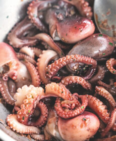 Un secondo di mare di tradizione per chi ama i molluschi, preparato con polpetti o moscardini cotti nel pomodoro. Perfetto il pane siciliano per accompagnare il piatto