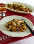 Prepara il ripieno. Rosola i tentacoli in una casseruola con 4 cucchiai di olio e l'aglio spellato e tritato per 2-3 minuti, mescolando spesso. Irrora con 2 cucchiai di vino bianco e lascialo evaporare. Trasferisci i tentacoli intiepiditi con il fondo di cottura in una ciotola con la mollica di pane bagnata nel latte e strizzata, il parmigiano reggiano grattugiato, le olive tritate, l'uovo, il prezzemolo, i capperi sgocciolati e 1 pizzico di sale e pepe e mescola bene.