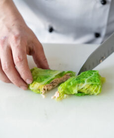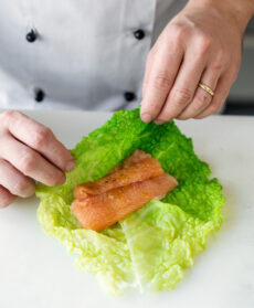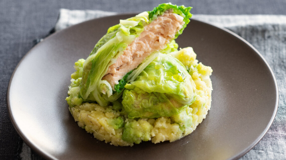 È una cottura al cartoccio quella nelle foglie di verza, perfetta per conservare i profumi e il sapore di questo pesce d'acqua dolce. Le patate e il cavolo accolgono gli involtini con grande discrezione. Si valorizza così al massimo tutta la bontà del salmerino