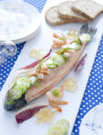La trota affumicata non ha nulla da invidiare al più diffuso salmone affumicato, con la differenza che si tratta di una specialità a filiera nazionale. La trota iridea è lavorata artigianalmente: eviscerata, salata a secco con sale marino e spinata a mano. La successiva fase di affumicatura dei filetti può essere a freddo (non oltre 30°), con legni duri e bacche per ottenere, preferibilmente senza ricorrere a conservanti né coloranti.