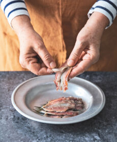 Pangrattato, uvetta, pinoli e succo d'arancia compongono quella che a Palermo è la "conza" per eccellenza, cioè il condimento della bella stagione e dei pranzi domenicali dove le mani delle nonne pulivano decine di sarde e avvolgevano altrettanti involtini. Una ricetta qui riproposta in raffinate monoporzioni.