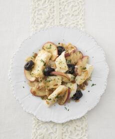 La cucina tradizionale stupisce per accostamenti all’apparenza azzardati e molto attuali. Come quello tra mele, prugne secche, uvetta e baccalà di questo piatto agrodolce capitolino, rifinito con mosto cotto e/o salsa di pomodoro. Legato alla Vigilia di Natale, vale la pena recuperarlo anche in altre occasioni proprio per la sua originalità.