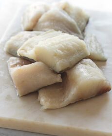 Con 2-3 giorni di anticipo, private il baccalà del sale mettendolo in ammollo in acqua, che dovrete cambiare due volte al giorno. Quindi scolatelo e tamponatelo con carta da cucina. In alternativa potete usare baccalà già dissalato.