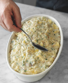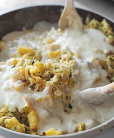 Un secondo delicato e raffinato, preparato con patate, cipolle, panna e olive. Un boccone cremoso e vellutato